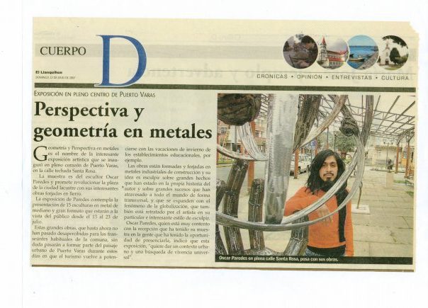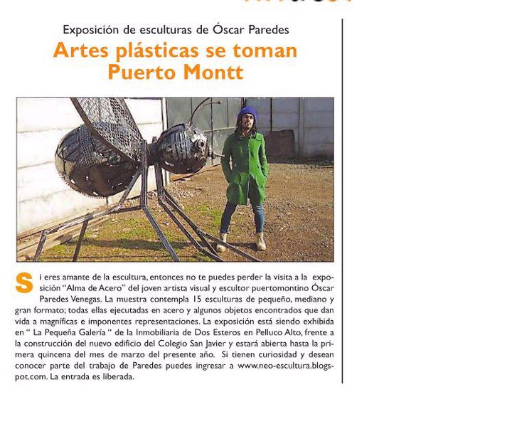 SoyChile – “En la Biblioteca Municipal de Puerto Varas se inaugura la exposición ‘Deshechos’” (incluye cita de Óscar Paredes). (Soy Chile)